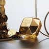 - Frasco Icónico: Un diamante de oro facetado, un símbolo de lujo y objeto de colección, que representa el brillo y el valor de la mujer que lo lleva.
